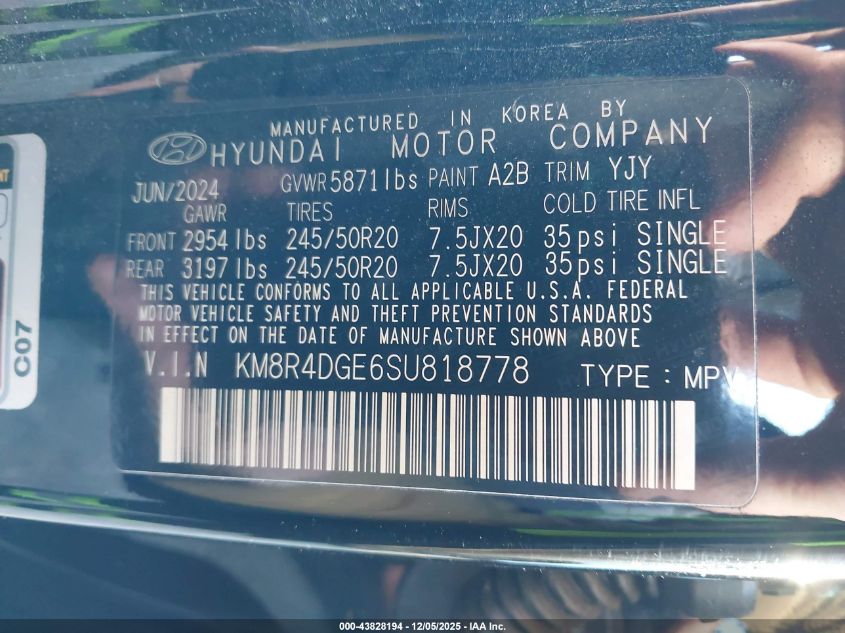 2025 HYUNDAI PALISADE 2025 року Бензин, 3.8, Полный привод, vin - KM8R4DGE6SU818778 из США