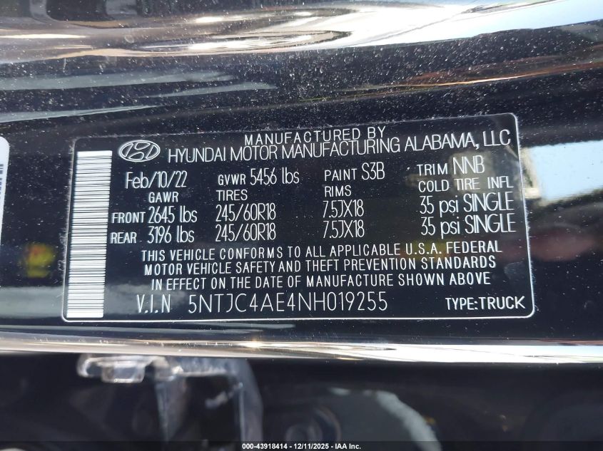 2022 HYUNDAI SANTA CRUZ 2022 року Бензин, 2.5, Передний привод, vin - 5NTJC4AE4NH019255 из США