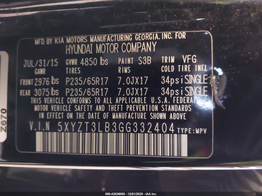 2016 HYUNDAI SANTA FE 2016 року Бензин, 2.4, Передний привод, vin - 5XYZT3LB3GG332404 из США