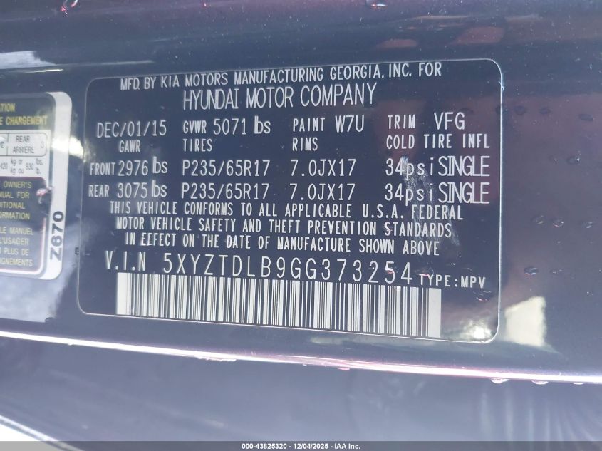 2016 HYUNDAI SANTA FE 2016 року Бензин, 2.4, Полный привод, vin - 5XYZTDLB9GG373254 из США