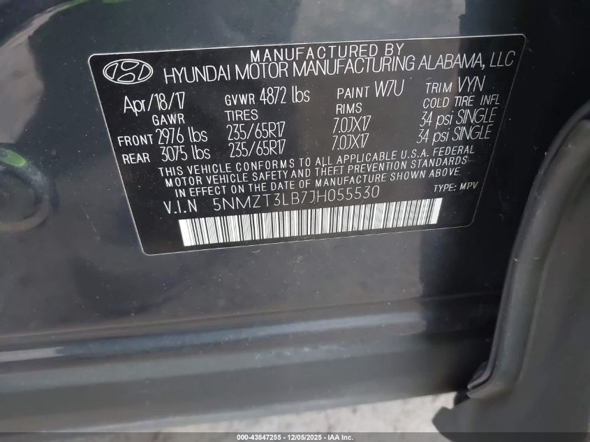 2018 HYUNDAI SANTA FE 2018 року Бензин, 2.4, Передний привод, vin - 5NMZT3LB7JH055530 из США