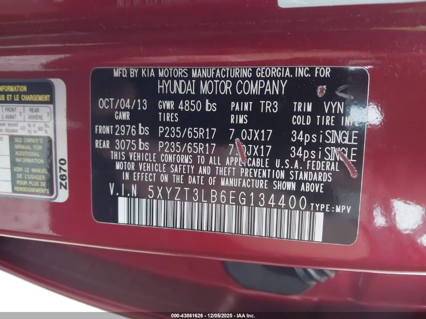 2014 HYUNDAI SANTA FE GLS