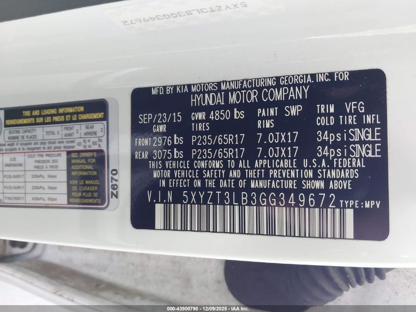 2016 HYUNDAI SANTA FE 2016 року Бензин, 2.4, Передний привод, vin - 5XYZT3LB3GG349672 из США