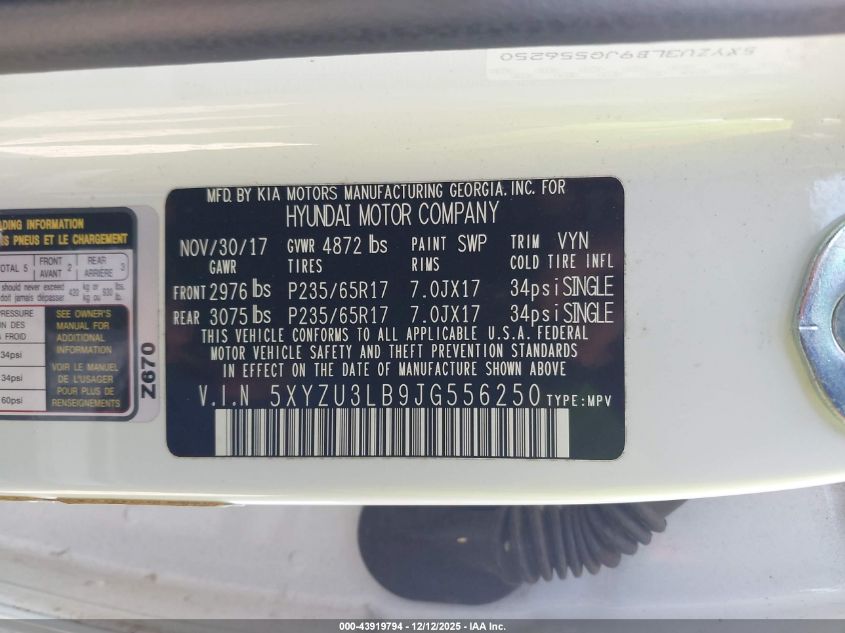 2018 HYUNDAI SANTA FE 2018 року Бензин, 2.4, Передний привод, vin - 5XYZU3LB9JG556250 из США