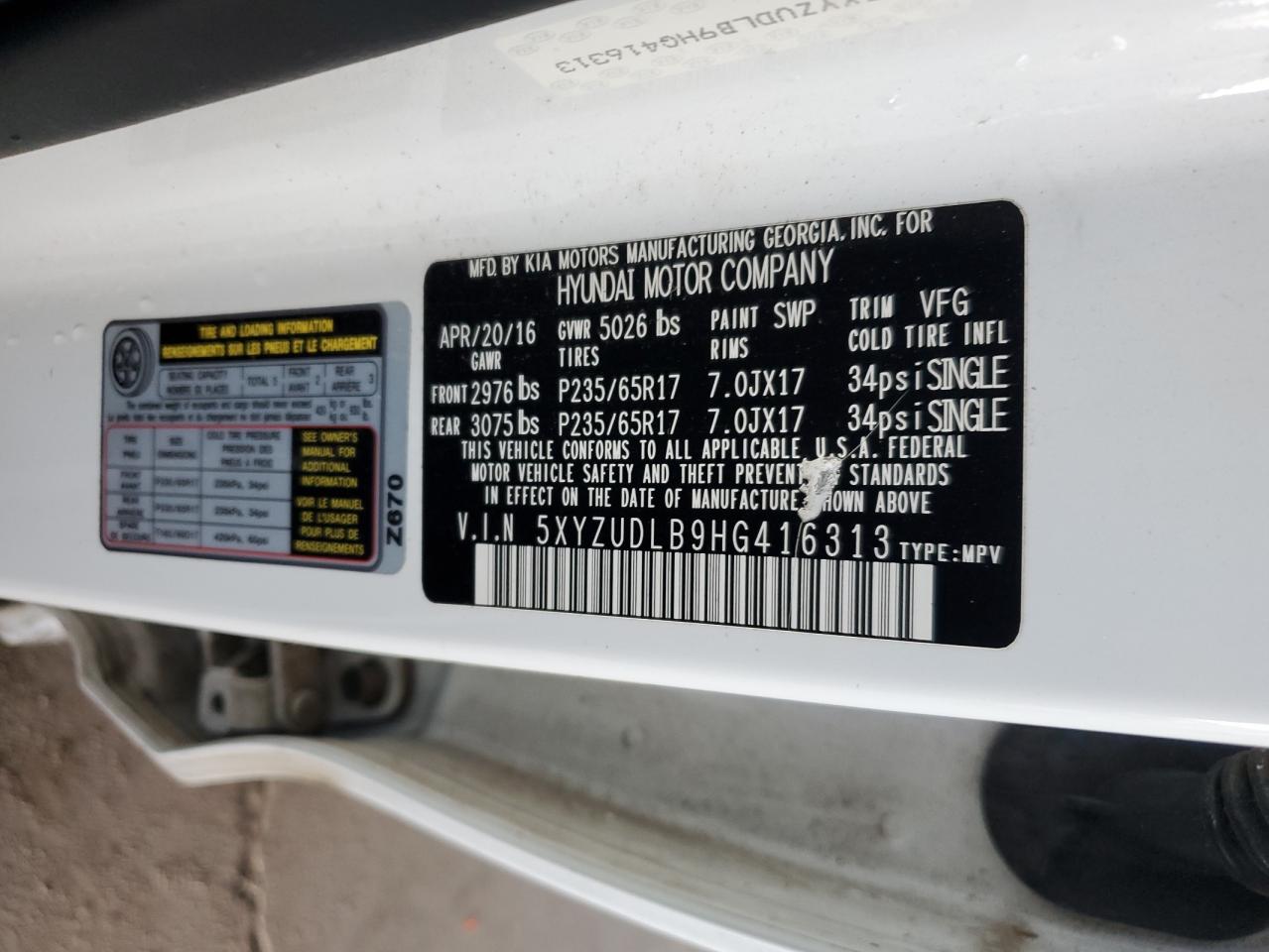Цвет БелыйЦилиндры 4Привод Полный приводVIN 5XYZUDLB9HG416313Состояние НеизвестноПовреждения Передняя или задняя AutoRIA