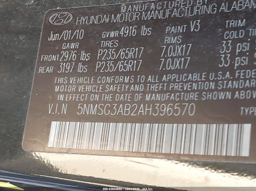 2010 HYUNDAI SANTA FE 2010 року Бензин, 2.4, Передний привод, vin - 5NMSG3AB2AH396570 из США
