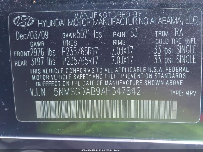 2010 HYUNDAI SANTA FE 2010 року Бензин, 2.4, Полный привод, vin - 5NMSGDAB9AH347842 из США