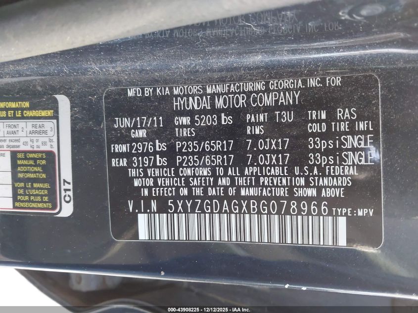 2011 HYUNDAI SANTA FE 2011 року Бензин, 3.5, Полный привод, vin - 5XYZGDAGXBG078966 из США