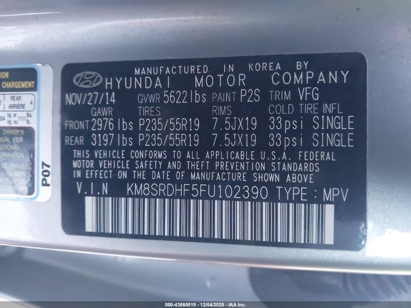 2015 HYUNDAI SANTA FE 2015 року Бензин, 3.3, Полный привод, vin - KM8SRDHF5FU102390 из США