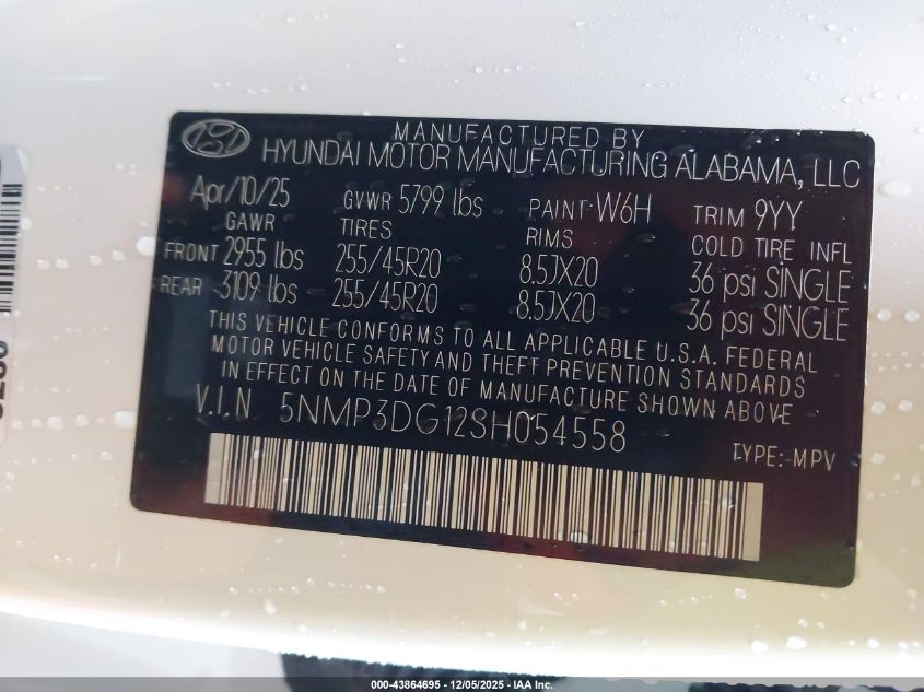 2025 HYUNDAI SANTA FE 2025 року Гибрид, 1.6, Полный привод, vin - 5NMP3DG12SH054558 из США