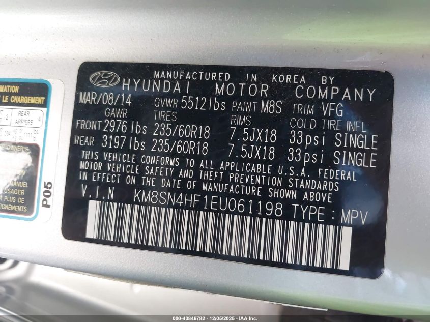 Цвет СеребряныйЦилиндры 6Привод Передний приводVIN KM8SN4HF1EU061198Состояние Заводится и едет (проверено)Повреждения Передняя или задняя AutoRIA