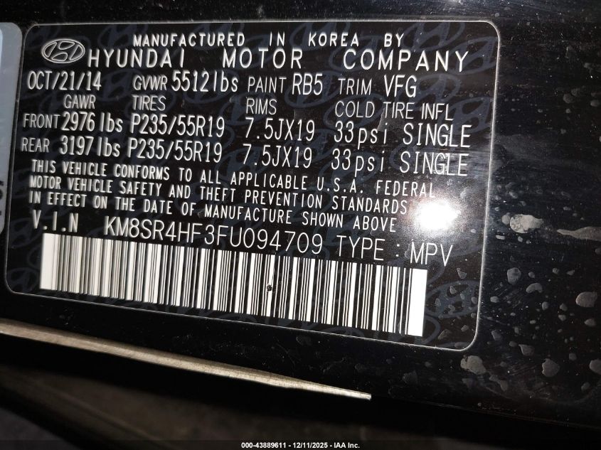 2015 HYUNDAI SANTA FE S