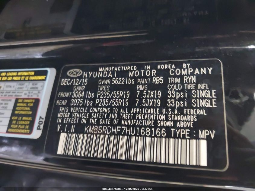2017 HYUNDAI SANTA FE 2017 року Бензин, 3.3, Полный привод, vin - KM8SRDHF7HU168166 из США