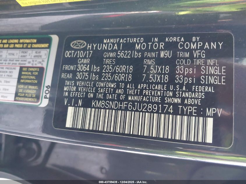 2018 HYUNDAI SANTA FE 2018 року Бензин, 3.3, Полный привод, vin - KM8SNDHF6JU289174 из США
