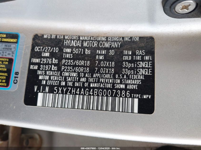 2011 HYUNDAI SANTA FE 2011 року Бензин, 3.5, Передний привод, vin - 5XYZH4AG4BG007386 из США