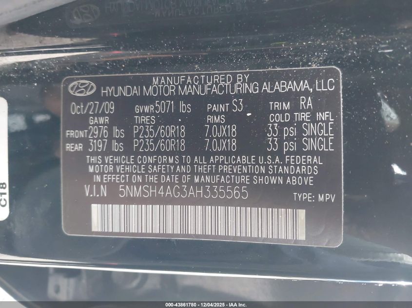 2010 HYUNDAI SANTA FE GLS