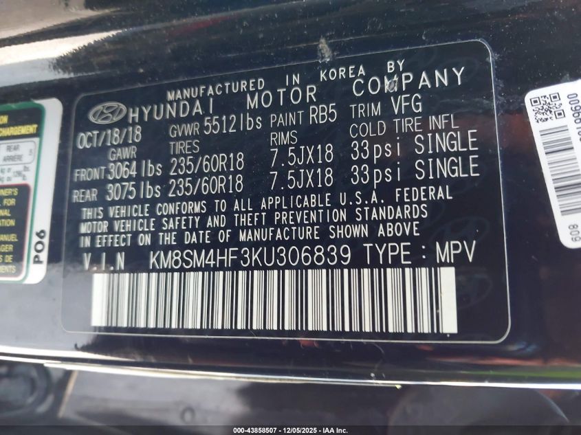 2019 HYUNDAI SANTA FE 2019 року Бензин, 3.3, Передний привод, vin - KM8SM4HF3KU306839 из США