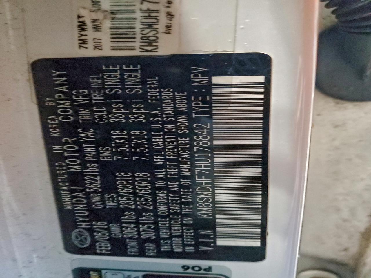 2017 HYUNDAI SANTA FE S