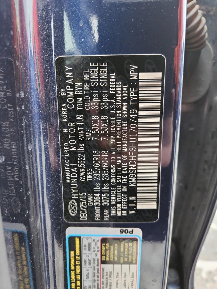 2017 HYUNDAI SANTA FE 2017 року Бензин, 3.3, Полный привод, vin - KM8SNDHF3HU170749 из США