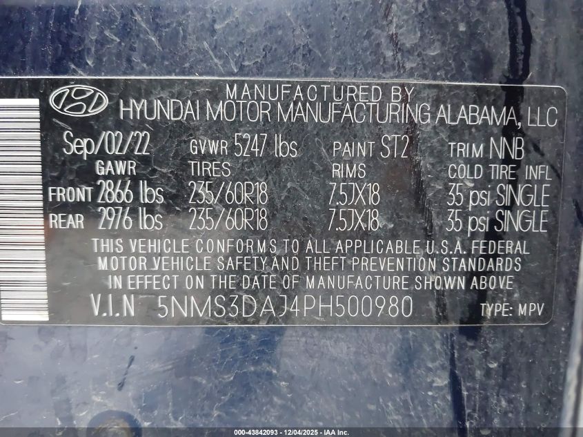 2023 HYUNDAI SANTA FE 2023 року Бензин, 2.5, Полный привод, vin - 5NMS3DAJ4PH500980 из США