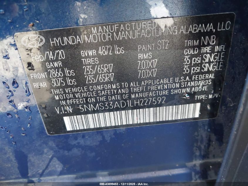 2020 HYUNDAI SANTA FE 2020 року Бензин, 2.4, Передний привод, vin - 5NMS33AD1LH227592 из США