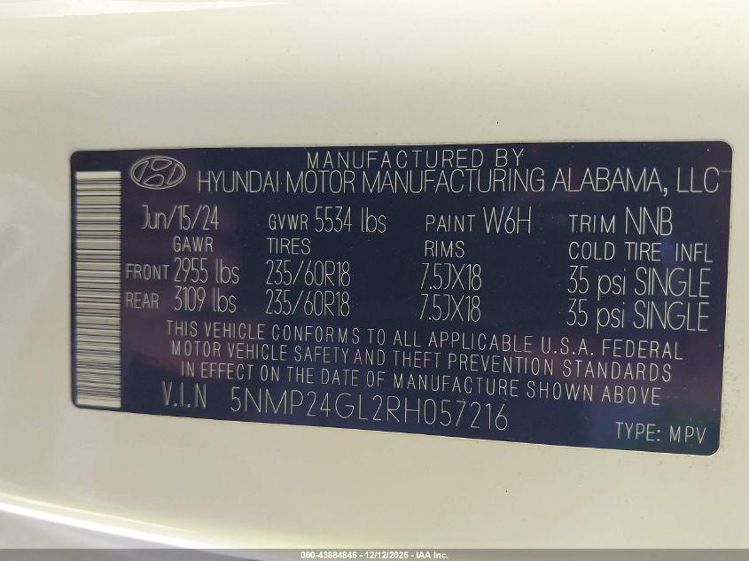 2024 HYUNDAI SANTA FE 2024 року Бензин, 2.5, Передний привод, vin - 5NMP24GL2RH057216 из США