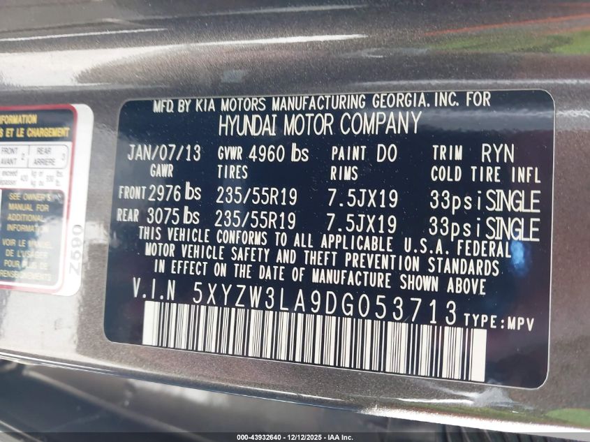 2013 HYUNDAI SANTA FE S