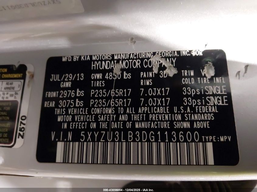 2013 HYUNDAI SANTA FE 2013 року Бензин, 2.4, Передний привод, vin - 5XYZU3LB3DG113600 из США