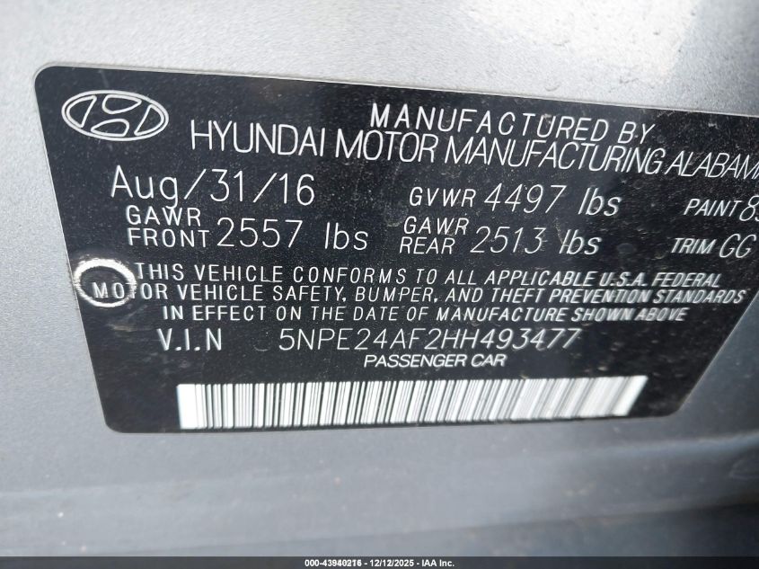 2017 HYUNDAI SONATA SE