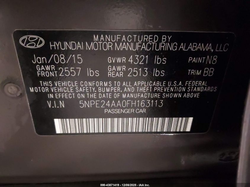 2015 HYUNDAI SONATA 2015 року Бензин, 1.6, Передний привод, vin - 5NPE24AA0FH163113 из США