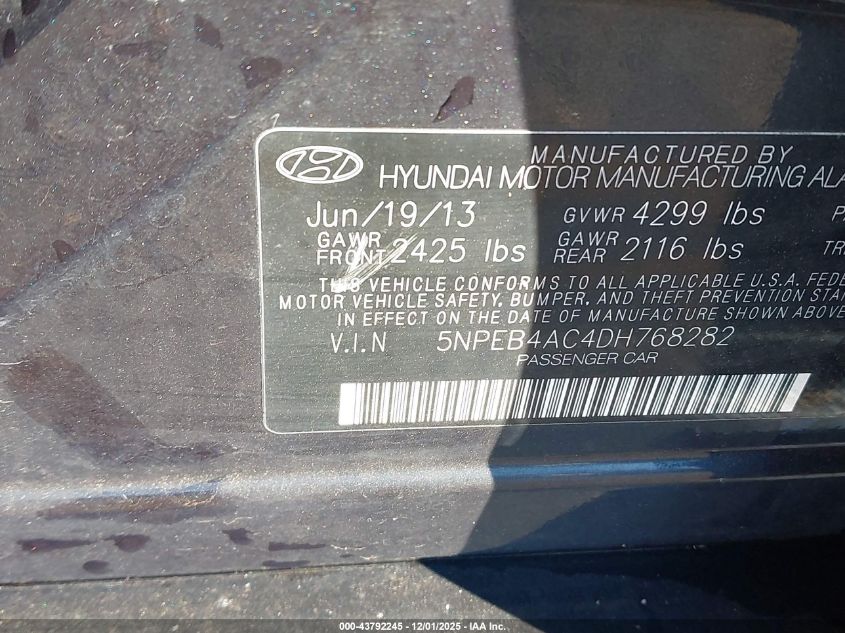2013 HYUNDAI SONATA 2013 року Бензин, 2.4, Передний привод, vin - 5NPEB4AC4DH768282 из США