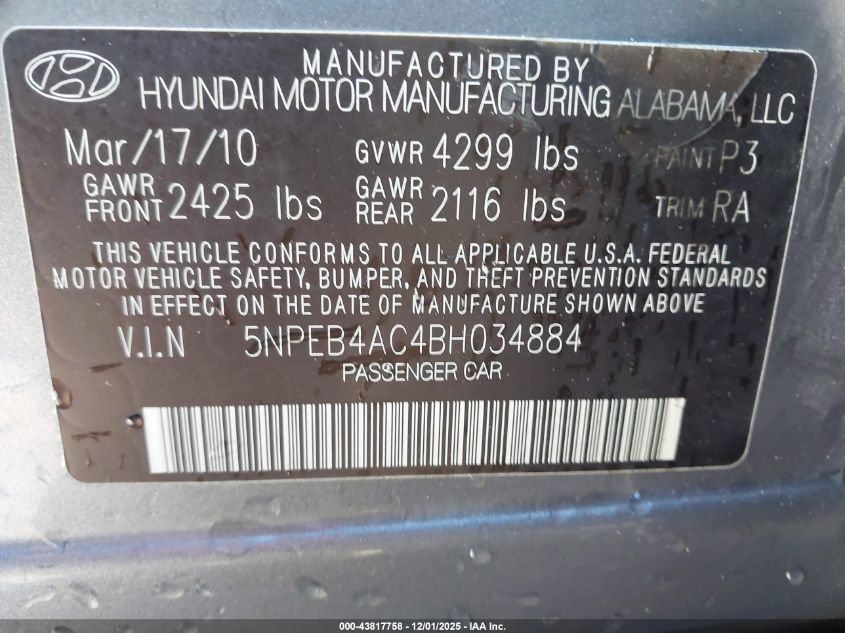 Цвет СерыйЦилиндры 4Привод Передний приводVIN 5NPEB4AC4BH034884Состояние Заводится и едет (проверено)Повреждения Передняя или задняя AutoRIA