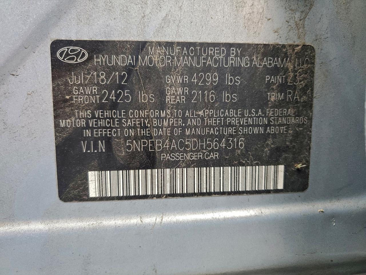 2013 HYUNDAI SONATA 2013 року Бензин, 2.4, , vin - 5NPEB4AC5DH564316 из США