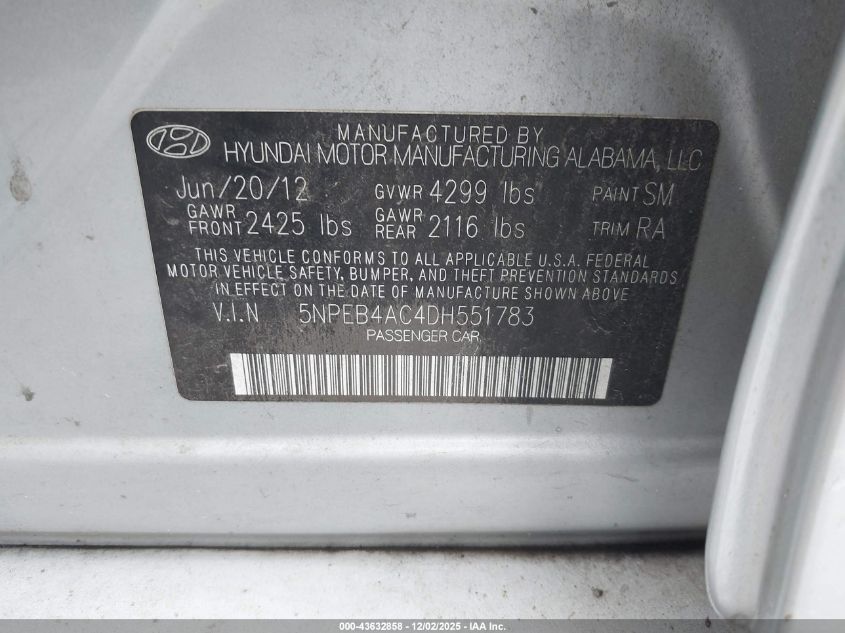 2013 HYUNDAI SONATA 2013 року Бензин, 2.4, Передний привод, vin - 5NPEB4AC4DH551783 из США
