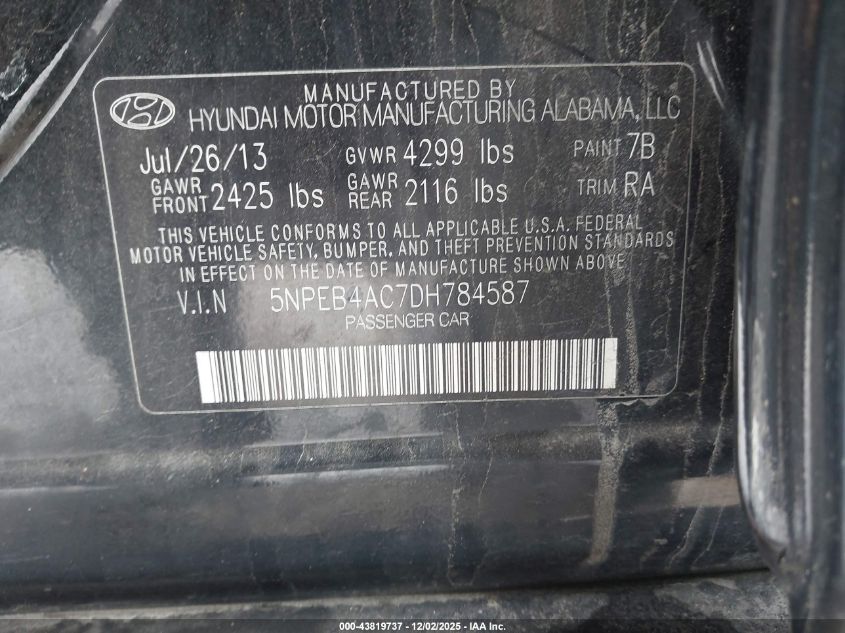 2013 HYUNDAI SONATA 2013 року Бензин, 2.4, Передний привод, vin - 5NPEB4AC7DH784587 из США