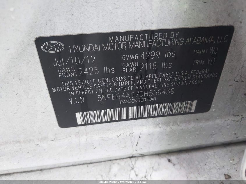 2013 HYUNDAI SONATA 2013 року Бензин, 2.4, Передний привод, vin - 5NPEB4AC7DH559439 из США