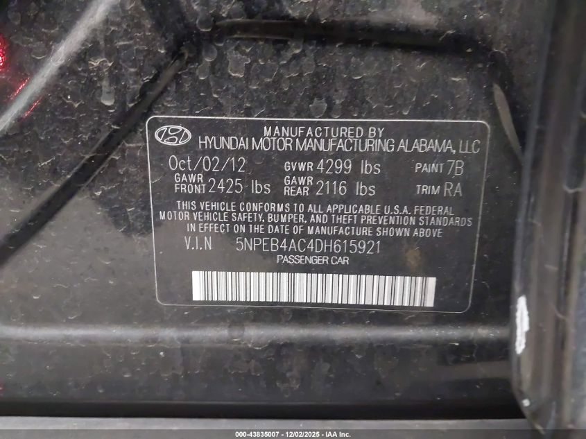 2013 HYUNDAI SONATA 2013 року Бензин, 2.4, Передний привод, vin - 5NPEB4AC4DH615921 из США