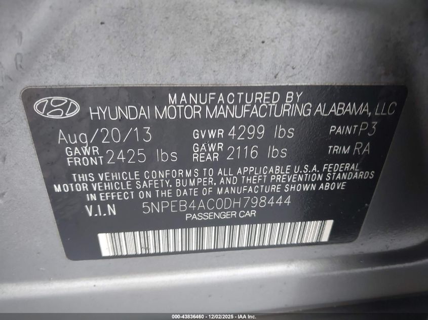 2013 HYUNDAI SONATA 2013 року Бензин, 2.4, Передний привод, vin - 5NPEB4AC0DH798444 из США