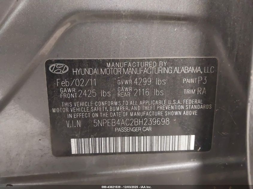2011 HYUNDAI SONATA 2011 року Бензин, 2.4, Передний привод, vin - 5NPEB4AC2BH239698 из США