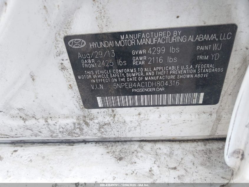 2013 HYUNDAI SONATA 2013 року Бензин, 2.4, Передний привод, vin - 5NPEB4AC1DH804316 из США
