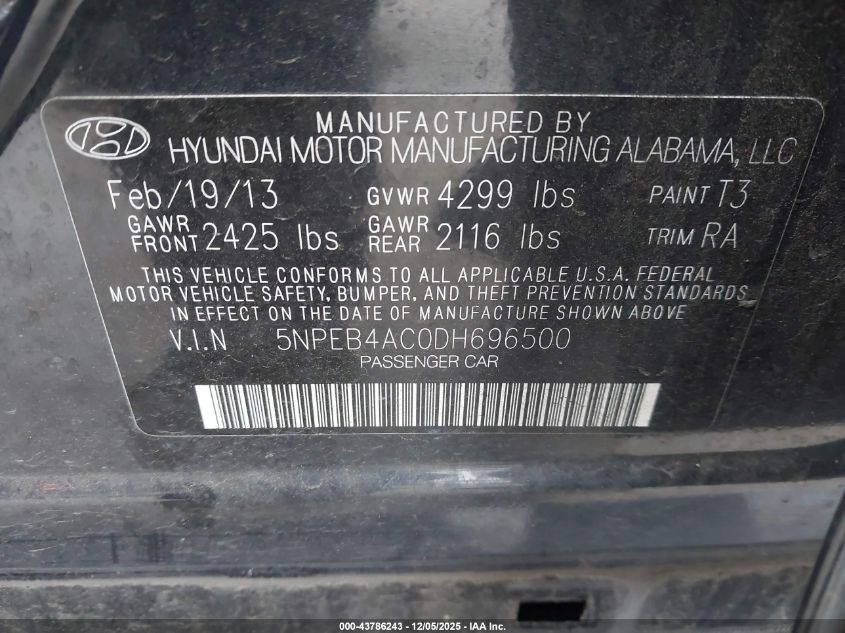 2013 HYUNDAI SONATA 2013 року Бензин, 2.4, Передний привод, vin - 5NPEB4AC0DH696500 из США