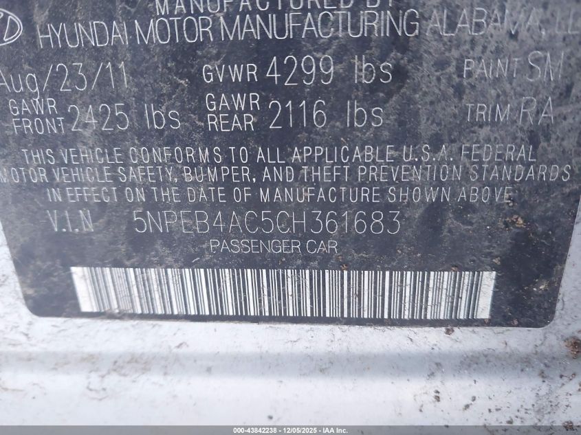 2012 HYUNDAI SONATA 2012 року Бензин, 2.4, Передний привод, vin - 5NPEB4AC5CH361683 из США
