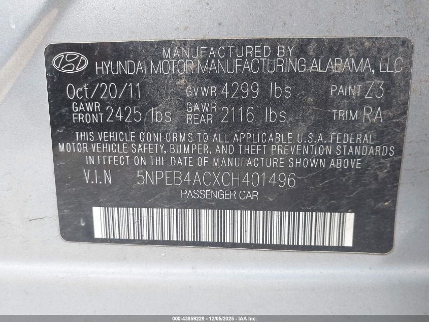 2012 HYUNDAI SONATA GLS