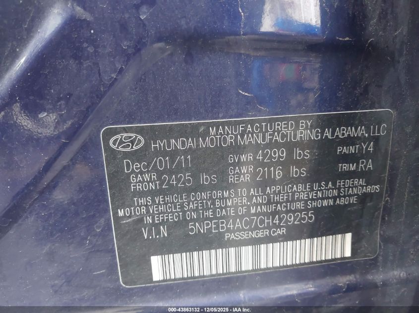 2012 HYUNDAI SONATA GLS