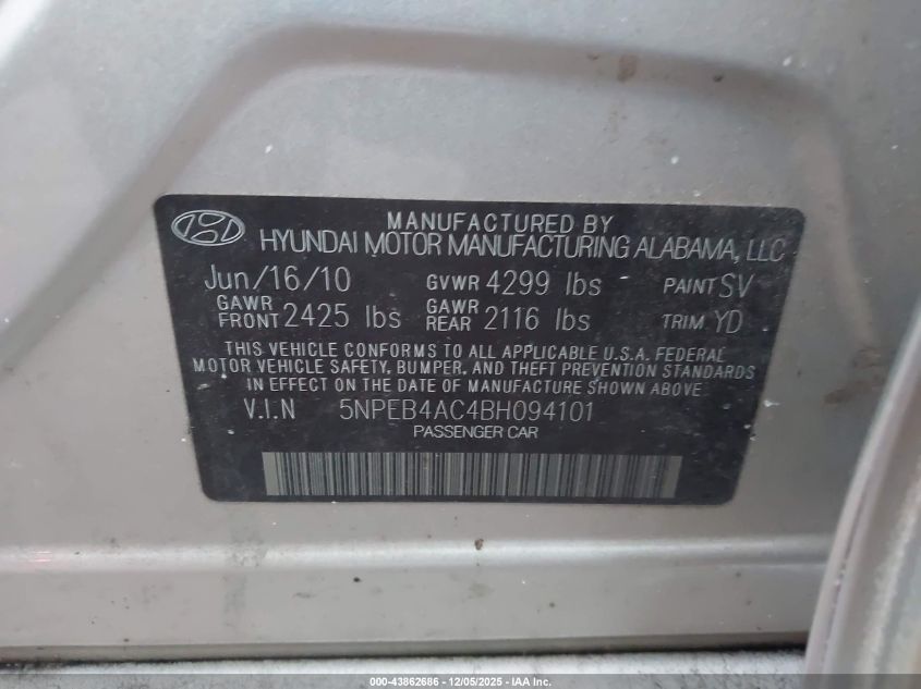 2011 HYUNDAI SONATA 2011 року Бензин, 2.4, Передний привод, vin - 5NPEB4AC4BH094101 из США
