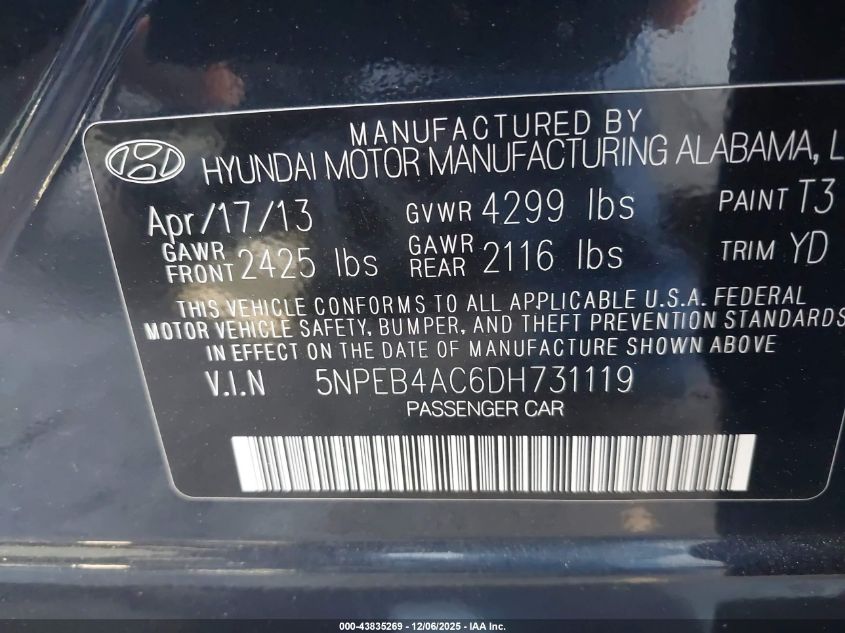 2013 HYUNDAI SONATA 2013 року Бензин, 2.4, Передний привод, vin - 5NPEB4AC6DH731119 из США