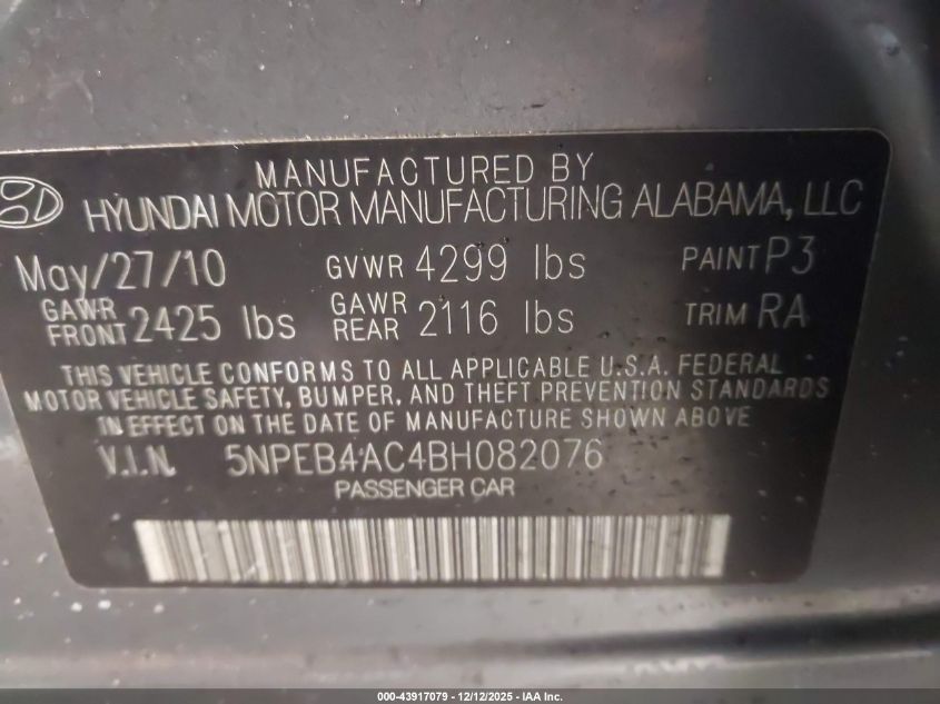 Цвет СерыйЦилиндры 4Привод Передний приводVIN 5NPEB4AC4BH082076Состояние ЗаводитсяПовреждения Передняя или задняя AutoRIA