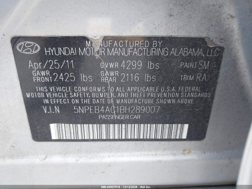 2011 HYUNDAI SONATA 2011 року Бензин, 2.4, Передний привод, vin - 5NPEB4AC1BH289007 из США