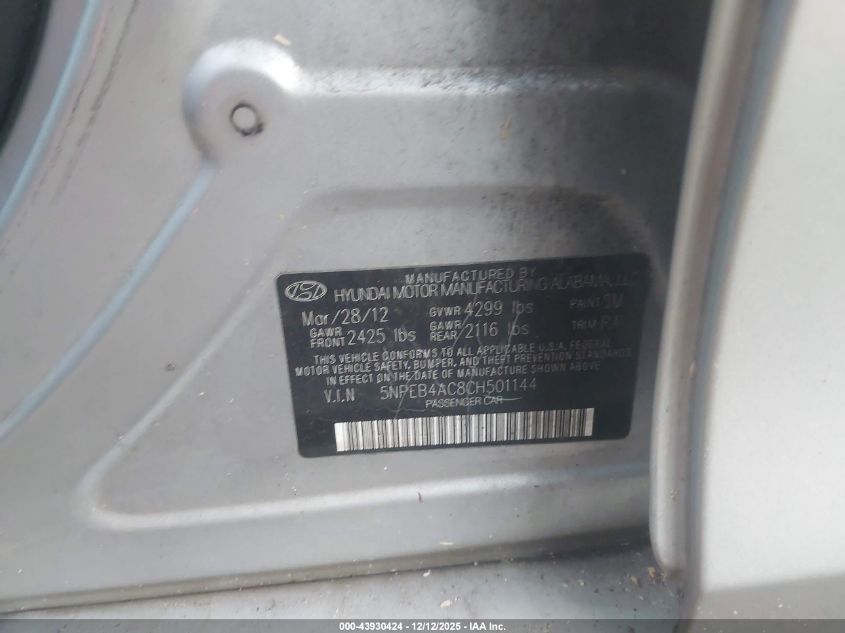2012 HYUNDAI SONATA 2012 року Бензин, 2.4, Передний привод, vin - 5NPEB4AC8CH501144 из США