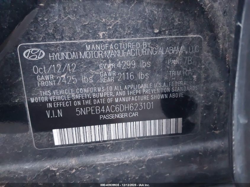 2013 HYUNDAI SONATA 2013 року Бензин, 2.4, Передний привод, vin - 5NPEB4AC6DH623101 из США